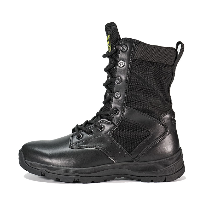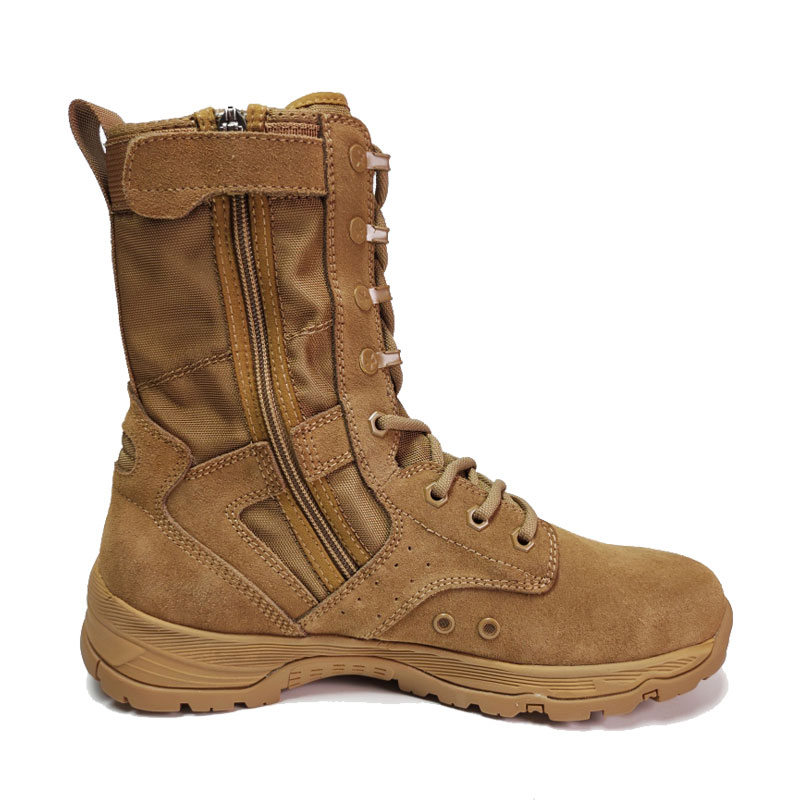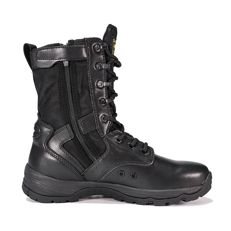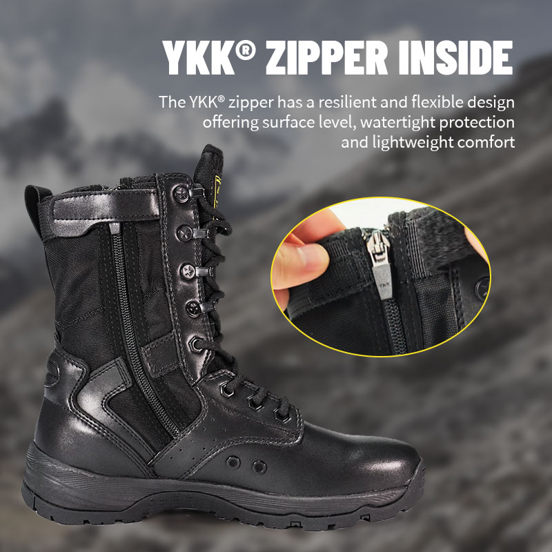 軍関係者やアウトドア愛好家向けに作られたフルラバー アウトソールのポリス ブーツは、荒れた地形でも安定した快適な包み込むようなフィット感を提供します。ガセット付きのタンがゴミの侵入を防ぎ中心に位置し、耐久性に優れたスエードとナイロンのアッパーが厳しい条件にも耐えます。 YKK ジッパーで着脱が簡単なので、これからのミッションに集中できます。