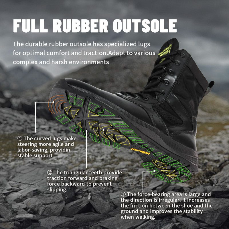 耐久性のあるラバーアウトソールには、最適な快適さとトラクションを実現する特殊なラグが付いています。さまざまな複雑で過酷な環境に適応します。
