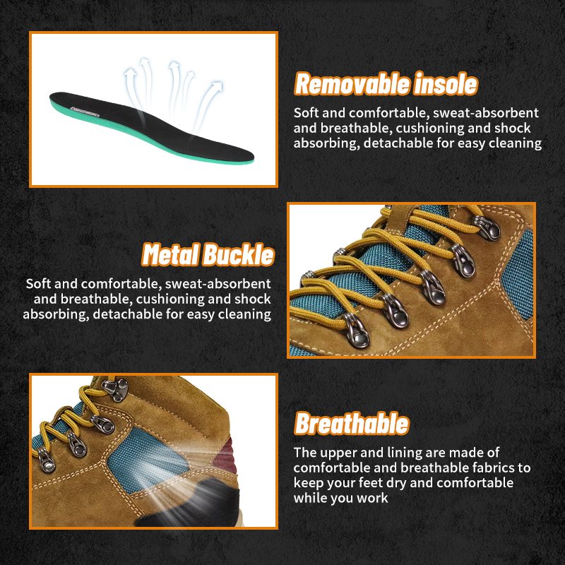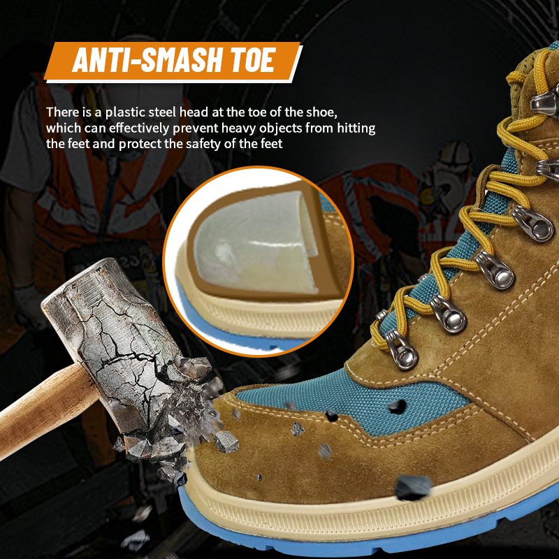 靴のつま先にはプラスチックスチールのヘッドがあり、重い物が足に当たるのを効果的に防ぎ、足の安全を保護します。