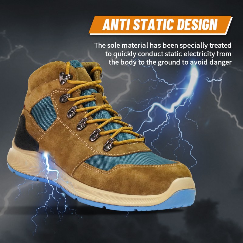 ソール素材には特殊な加工が施されており、身体からの静電気を素早く地面に伝導し、危険を回避します。