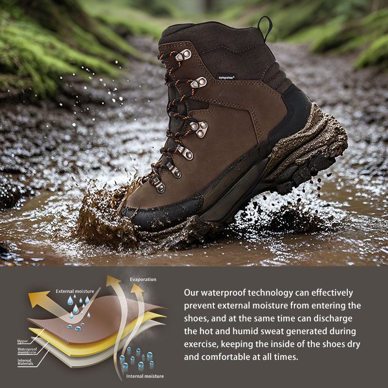 丈夫なヌバックレザー。防水透湿性を実現するPFASフリーのSympatex。これらを組み合わせることで、心地よいドライな着心地を実現します。