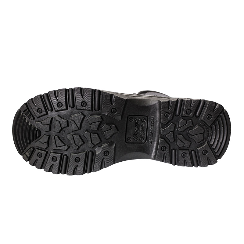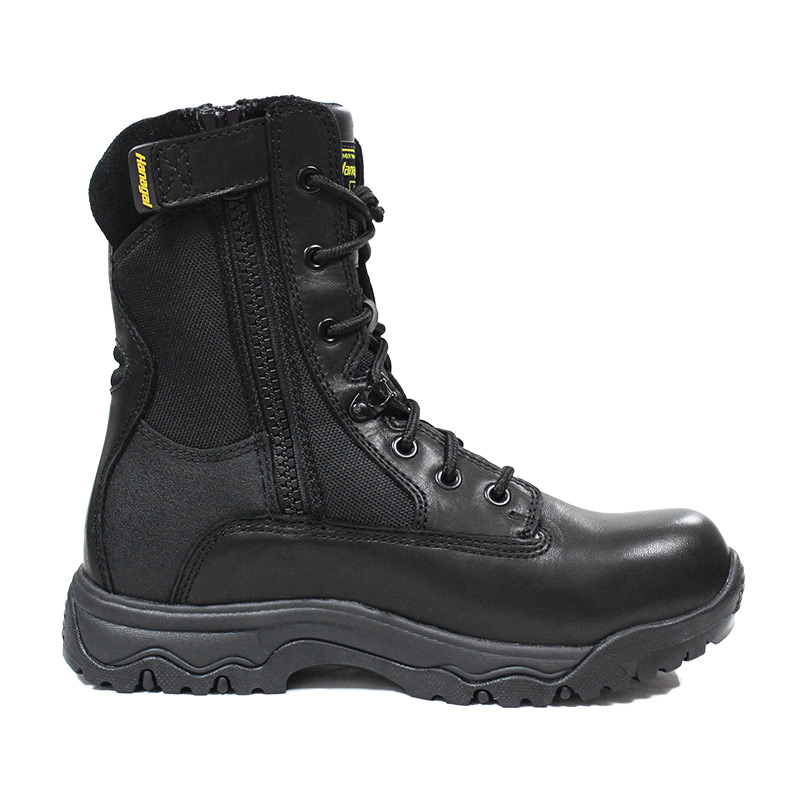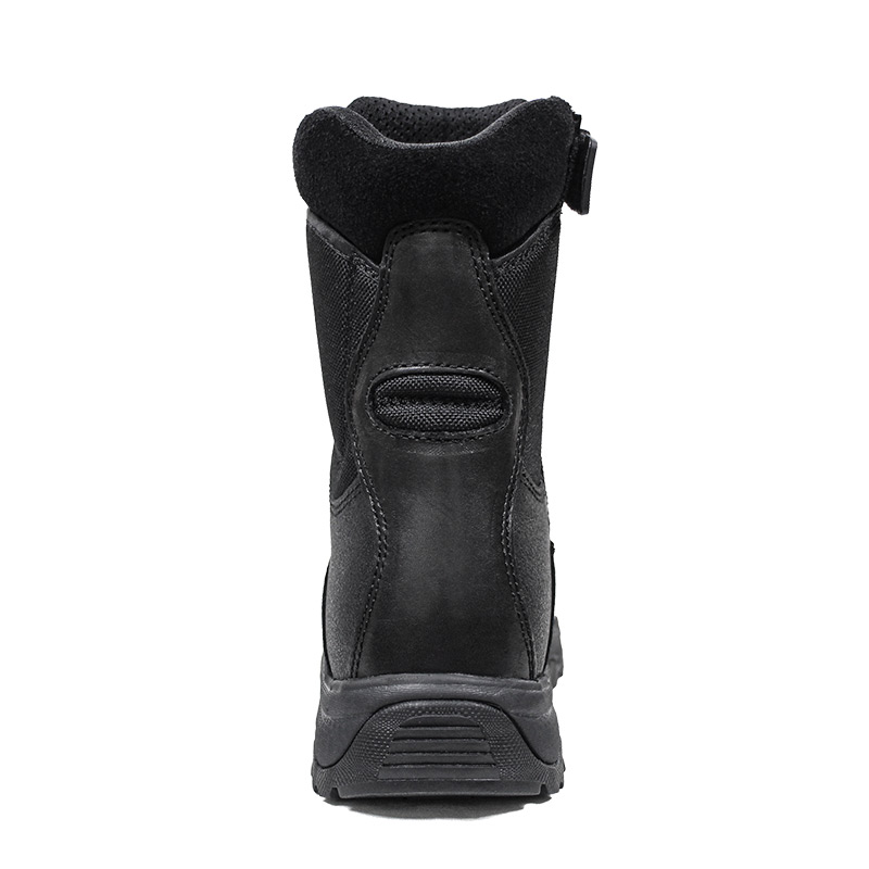 YKK ジッパー フルグレイン レザー ポリス ブーツは、地形が険しい場合でもサポートや耐久性を犠牲にすることなく、スピードと機動性を重視して作られています。アッパーには撥水性のあるフルグレインレザーと通気性と耐摩耗性に優れたハイテク素材を組み合わせています。 YKKジッパーで着脱が素早く簡単に行えます。足首の上を包み込むハイカットデザインで、保護力と安定性を高めています。足元には、高性能 EVA ミッドソールが本格的なクッショニングを提供し、衝撃を吸収しながら足の自然な動きを実現します。そしてゴム製のアウトソールは?深く特殊なラグが、何マイルでも必要なグリップ力を提供します。