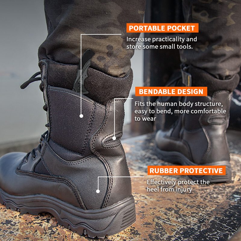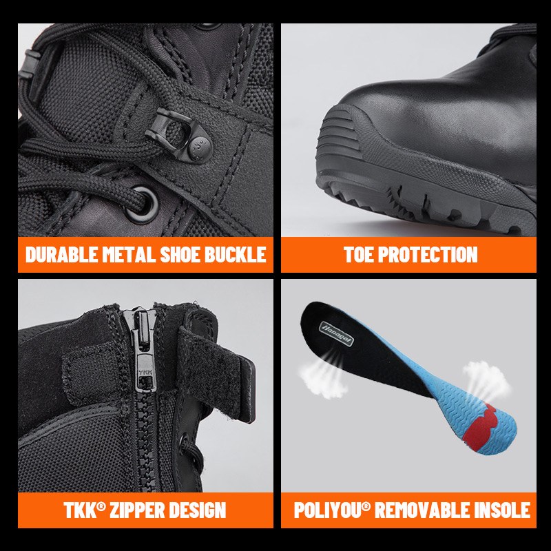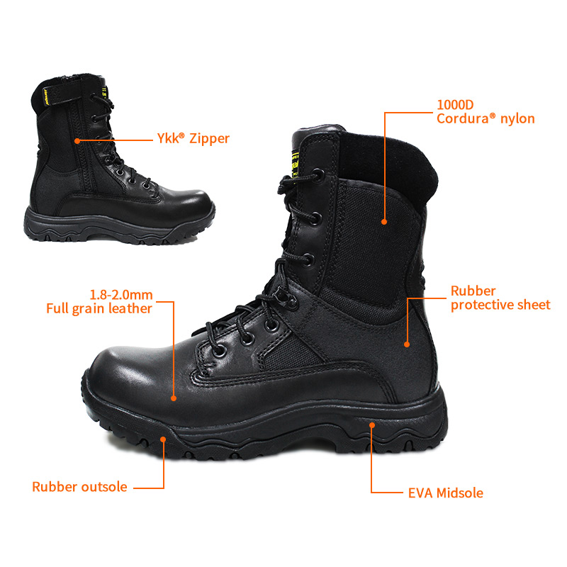 これらの YKK ジッパー フルグレイン レザー ポリス ブーツは、色、素材、ディテールのカスタマイズが可能で、MOQ は 800 足で、ブランド コラボレーションやグループ調達に最適です。そして、このハンティングブーツには次のような利点があります。